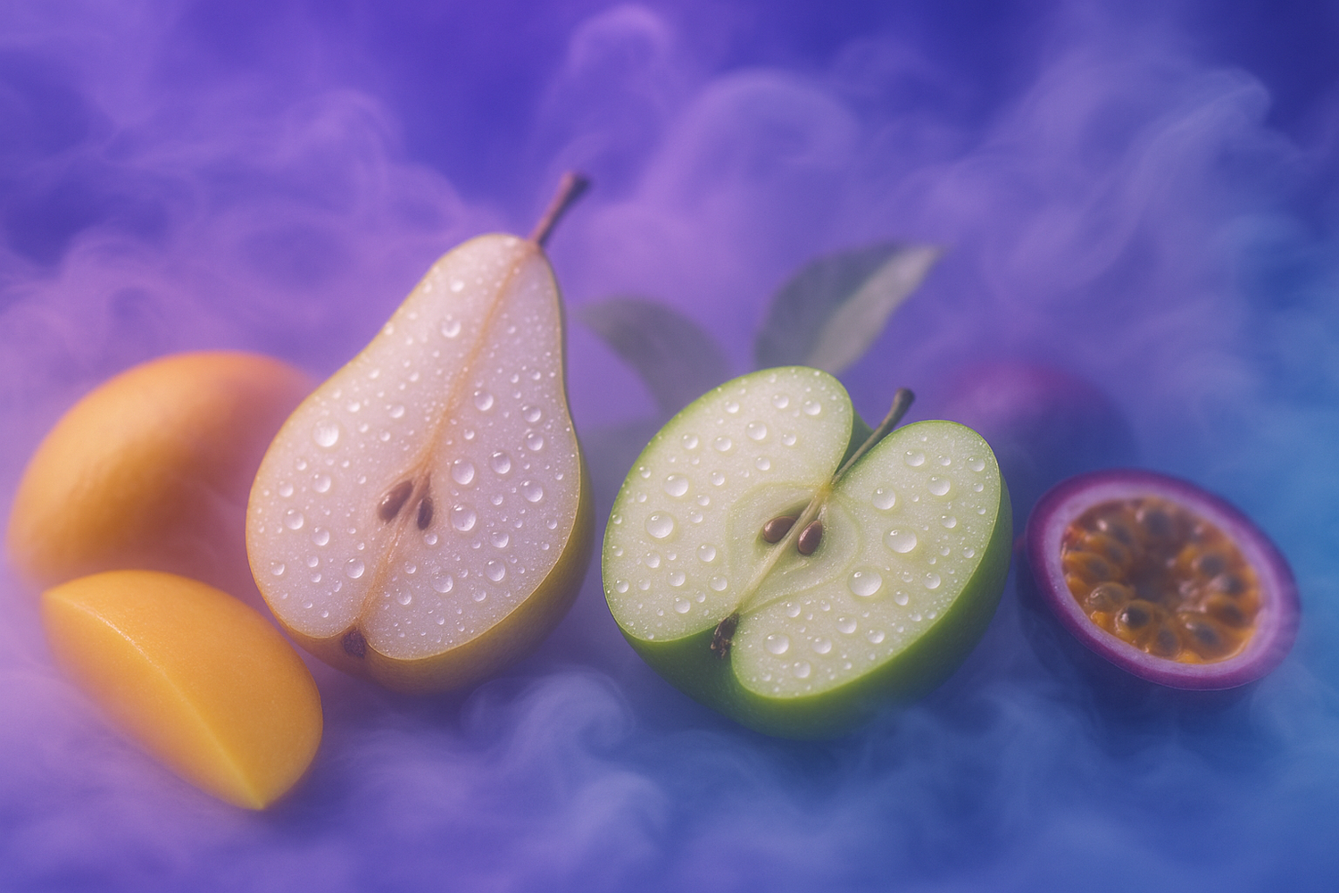“Imagine a soft whisper bringing in news that instantly puts you in a good mood. The soft scent of “Purple-blue” aims to do just that. It opens with dreamy and enveloping notes of watery pear and green apple that joyously play with the sweetness of other tropical fruits, bringing bliss to every nose that smells it. The flowing notes of jasmine and freesia are complemented by the serene and care free white musk in the base to evoke a peaceful symphony that never ends…