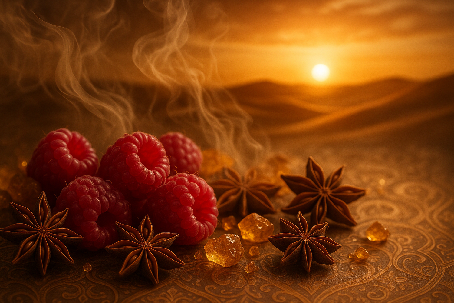Inspired by an Arabian sunrise, Rehan has vibrant raspberry that strikes your nose and blends harmoniously with the anise, giving it a sweet and distinct oriental impression. The flavor of amber and musk at the base is as captivating as the sight of the sun rising above the horizon.